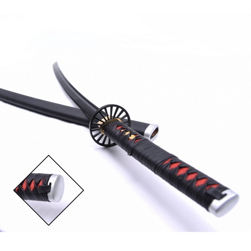Katana ispirata alla spada di Tanjiro. Lama in acciaio, tsuba tonda ed impugnatura in similpelle nera. Fodero in legno nero opaco.